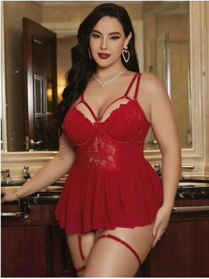 Kadın Büyük Beden Kırmızı Seksi Tasarım Fantezi Jartiyer Takımı 8016