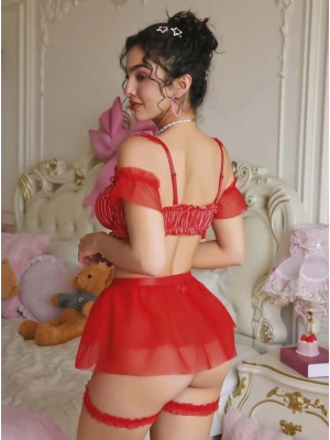 Kadın Kırmızı tül ve dantel Detaylı Fantezi Kostüm 2234