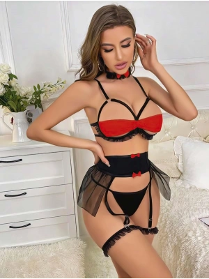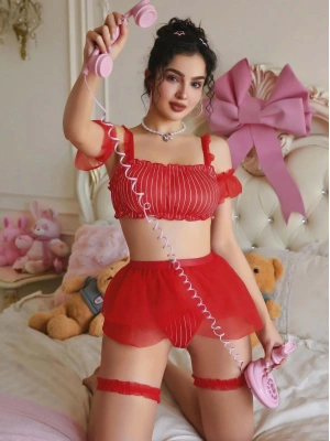 Kadın Bordo Etek Fantezi Jartiyer Sexy Gecelik Takım 2151