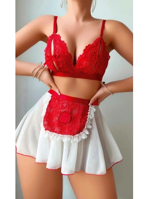 Kırmızı Puantiye Etekli Kadın Fantezi Seksi Kostüm 2076