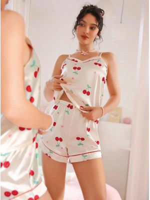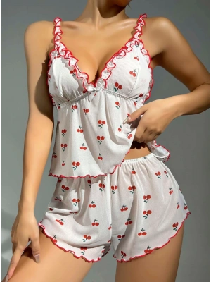 Kadın Ekru çiçek baskılı şortlu gecelik pijama takımı, cesur ve şık bir görünüm yaratır. Yumuşak kumaşı sayesinde rahat kullanım imkanı sunar.
