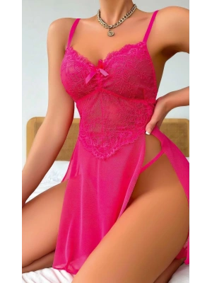 Kadın Kırmızı Fantezi Gecelik Tül Fiyonk detaylı Yanları Dekolteli 2160
