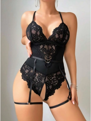 Kırmızı siyah dantel tasarımıyla tatlı bir konsepti sunar. Özel anlar için hem sevimli hem de çekici bir seçimdir.