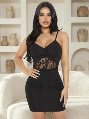 Kadın Lacivert Kuşak ve Dantel Detaylı Gece Kıyafeti 5148