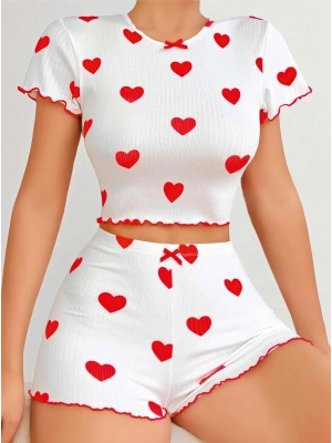 Tatlı rüyalar ve şık uykular için tasarlandı! Eğlenceli kalp desenleriyle süslenmiş bu saten şortlu pijama takımı, hem rahatlığı hem de enerjik tarzı bir arada sunuyor. Parlak ve yumuşak saten kumaşı ile teninize nazikçe dokunur, ince askılı üst ve esnek bel bantlı şort ise maksimum konfor sağlar. Kız gibi tatlı, kadın gibi şık!